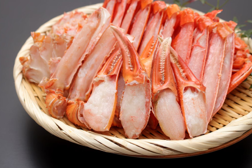 紅ずわいがにの一番の魅力は、その甘みと柔らかい身です。まるで絹のように滑らかな食感が口の中で溶け、噛むたびに甘みが溢れ出します。そのジューシーさは他の蟹と比べても格別で、食べるたびに甘く深い海の恵みが舌の上で広がります。