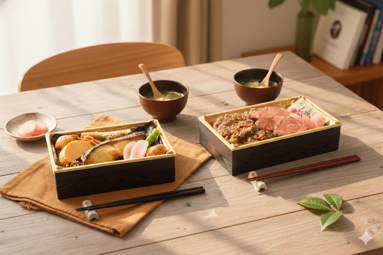 石川県産にこだわった、一度にすき焼き煮と生姜焼きをダブルでお楽しみいただける、ボリュームあるお弁当です。
